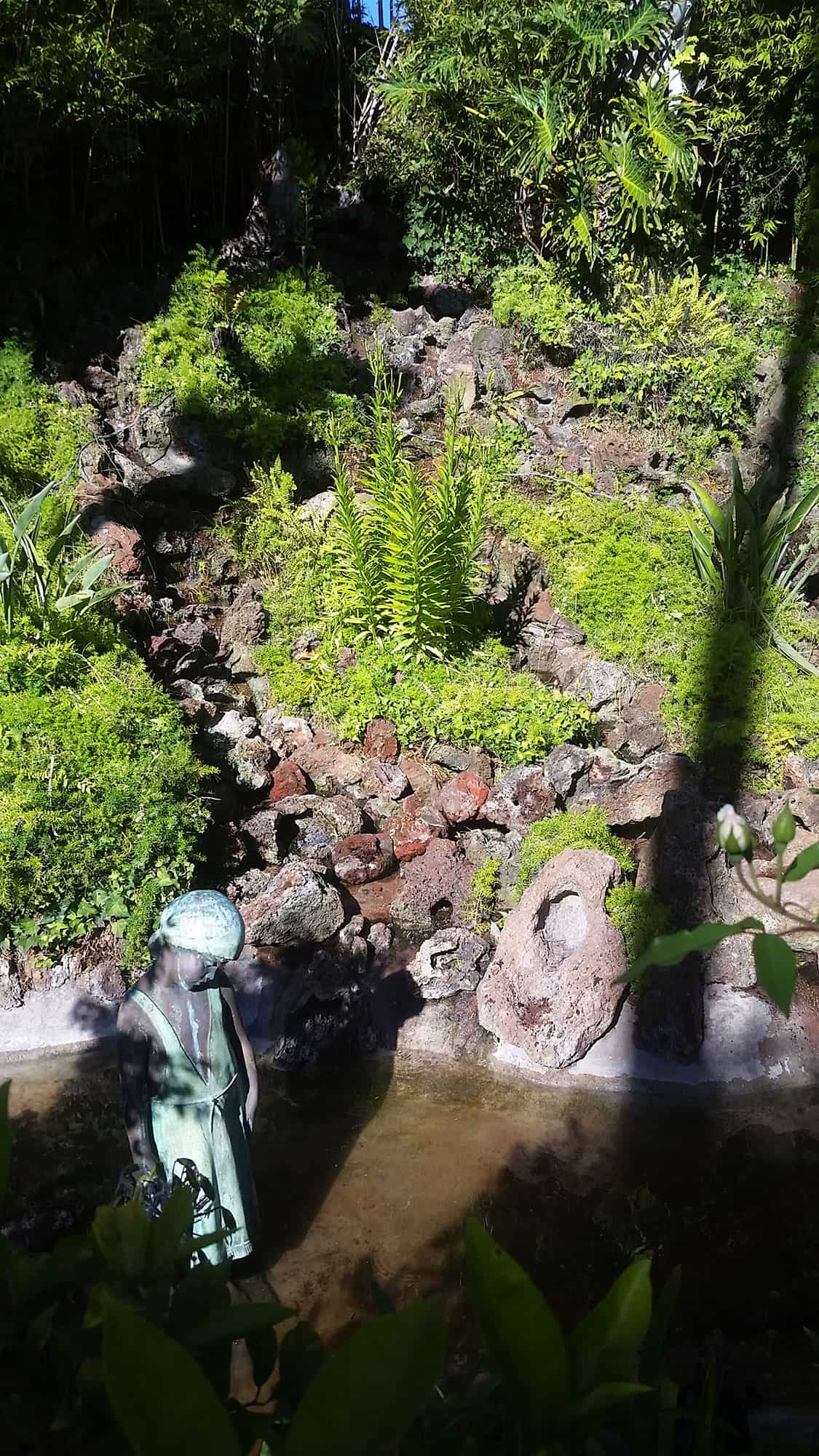 The picture on top shows a Koi Pond Remodel and Maintenance for one of your Sherman Oaks neighbors. This Koi Pond was in dire need of a filtration system makeover. The water was murky, the plumbing was a dated mess, and tree roots were taking over. Our team came to the rescue, and we have had delighted clients since then. Our team does Koi Pond Service at this location, and as they say, a picture is worth a thousand words. You can clearly see our signature crystal clear water and happy koi in this picture. The image that follows is of a Koi Pond Construction for another of your Sherman Oaks neighbors. Notice how the scattered rocks surrounding this Stream Bed give you the feeling of being in nature while hiking. Thankfully that hungry bear is made of solid stone!